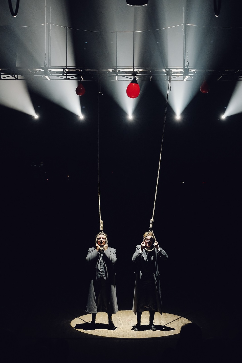 Наверное, потому, что мы им и сопереживаем, разве нет? Именно им – слабым, живым, страдающим людям. Пьеса драматурга Тома Стоппарда совсем не о страданиях главных героев Шекспира. Она о чувстве потерянности и растерянности перед лицом неведомых, но опасных сил. И, наверное, это ощущение, передается зрителю. Потому что, мне кажется, это состояние, в котором сейчас находится наше общество…Если художнику удается передать это ощущение, и оно знакомо и понятно зрителю, тогда возникает определенное напряжение, ток – между тем, что происходит на сцене, и зрителем.
