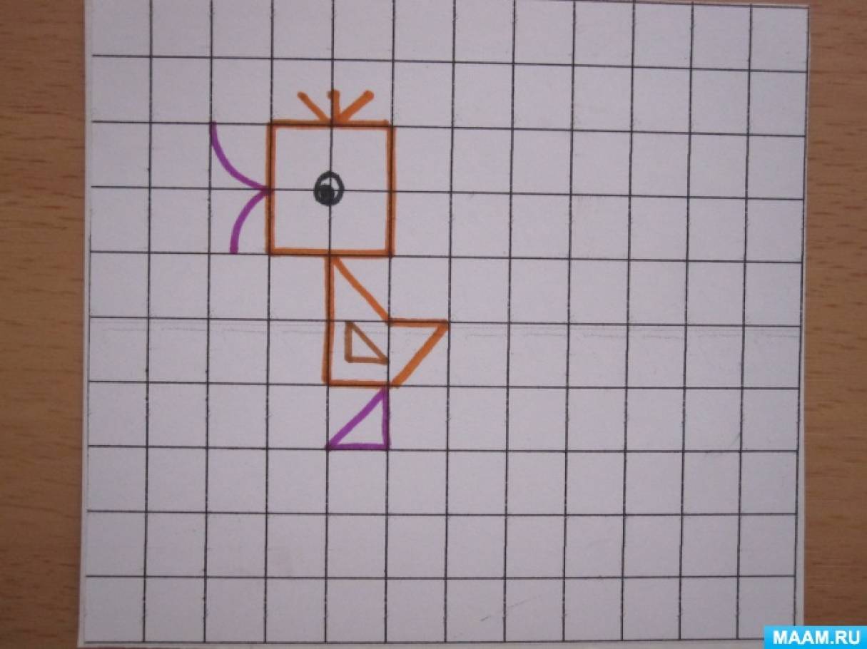 Теперь дети могут просто выбрать любую карточку-образец геометрического рисунка и нарисовать свою картинку на листе в клетку.